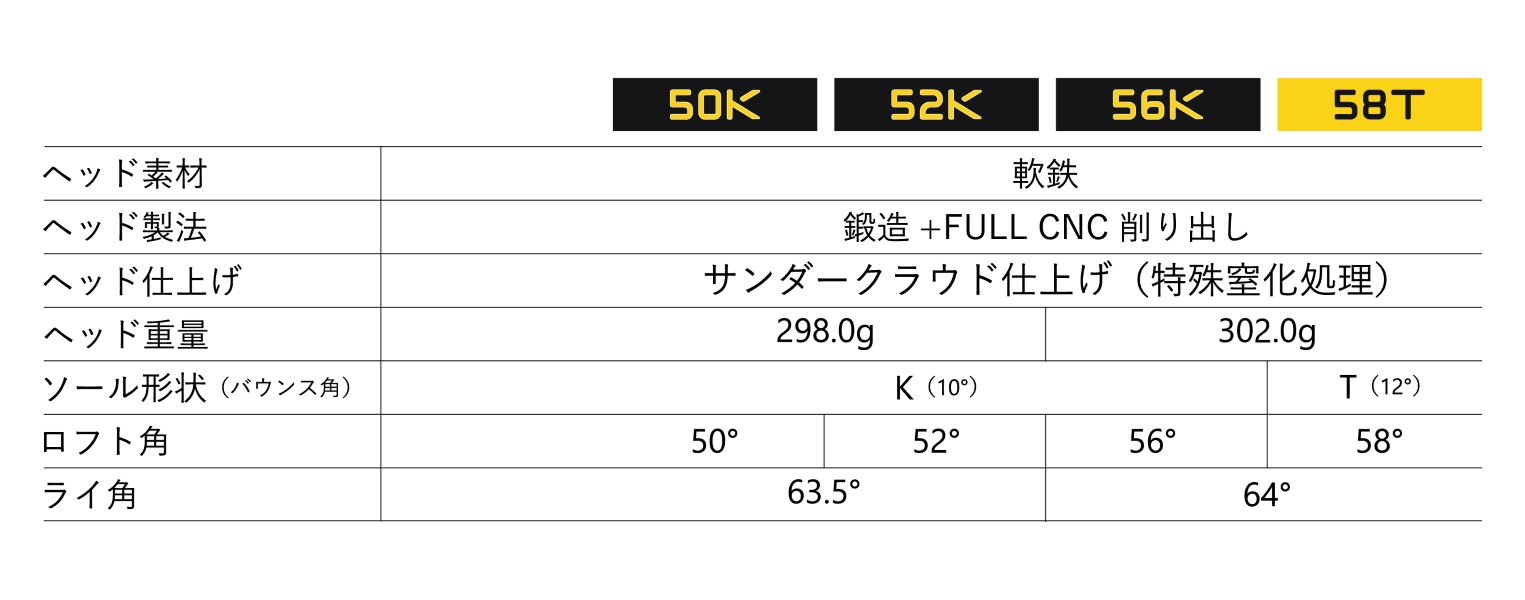 Kソール セミワイドなソール幅に、ソール形状がリニアに変化する自由曲面ソールとすることで、スクエアでしっかりと機能するだけでなく、開いて構えても、エッジが浮くことなくスピンショットを可能にします。